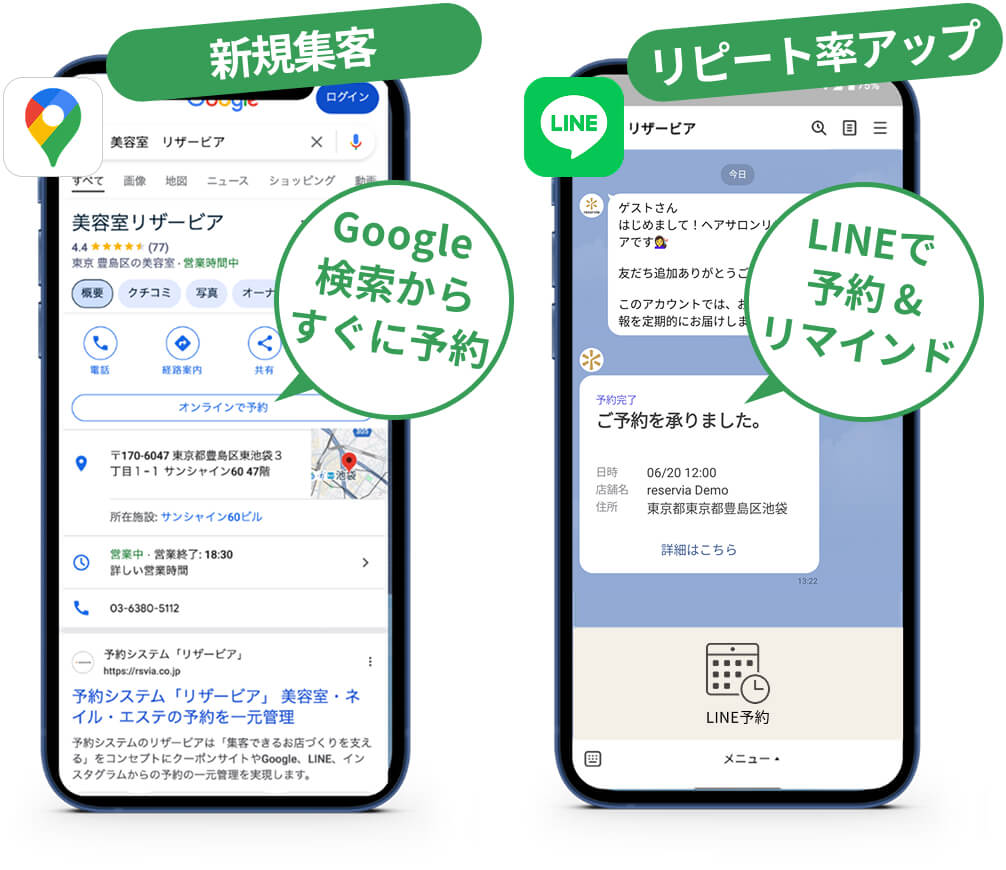 Googleビジネスプロフィールに、予約ボタンを設置できます。検索〜予約がスムーズに完了。予約数アップにつながります。